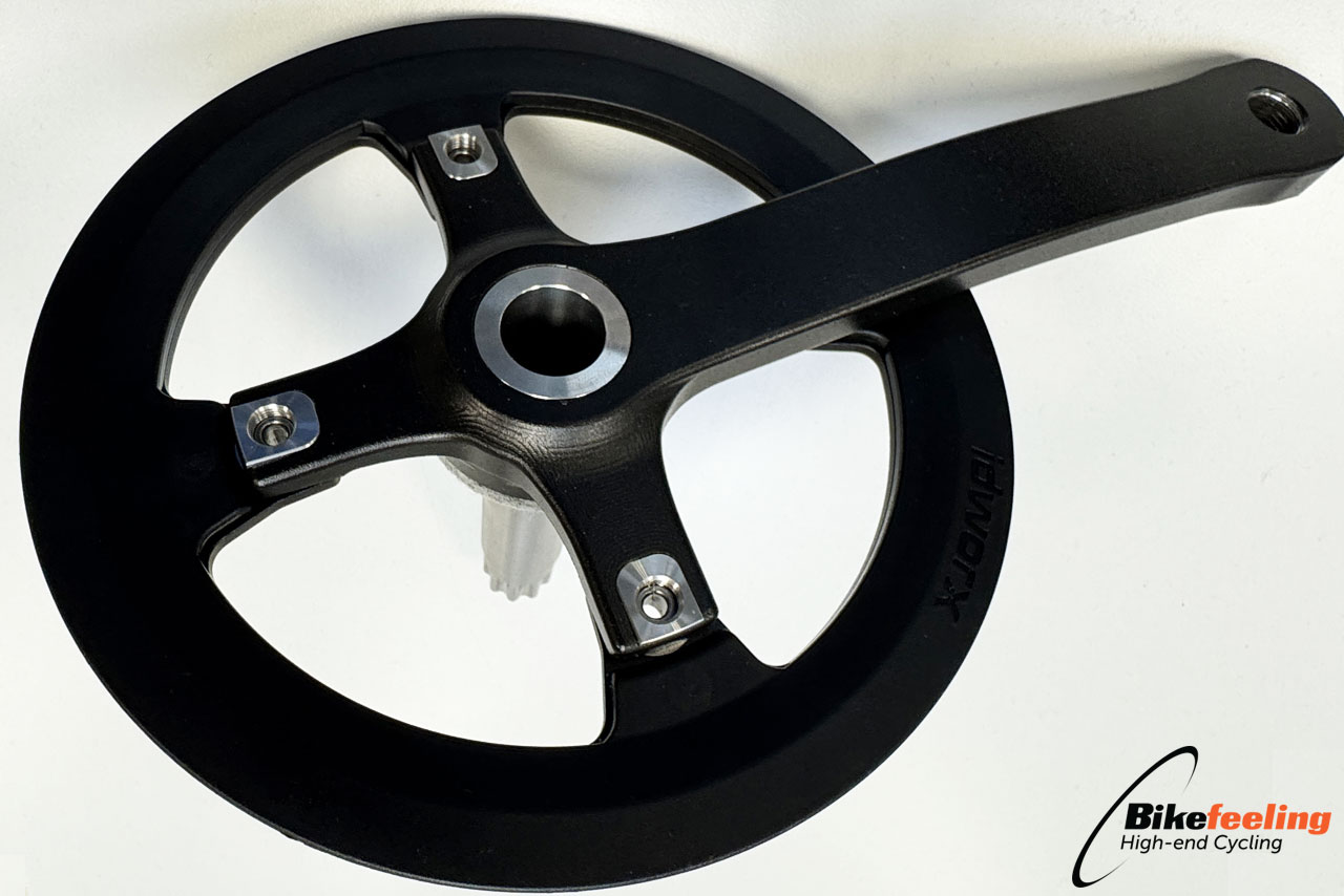 Een idworx DaGard bashguard, alleen voor 50 Tands voortandwiel, verlaagt het risico dat de broekspijp tussen de riem en tandwiel vast komt te zitten.