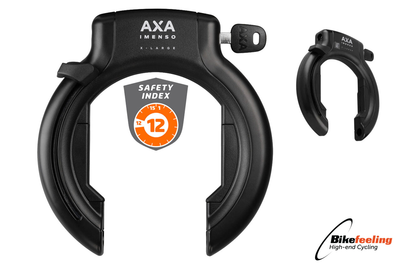De AXA Imenso is een hoogwaardig frameslot met de mogelijkheid een Texlock Mate of een ULC plug-in ketting in de zijkant van het slot te steken om zo je fiets aan een vast object vast te zetten. Het ringslot heeft een ART 2 sterren goedkeur, hiermee voldoet het slot aan de eisen om een fietsverzekering af te sluiten.